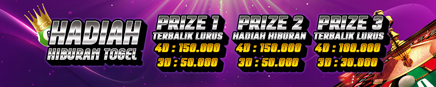 - Hadiah prize 2 : 4D = Rp. 150.000,- / 3D = Rp. 50.000,-